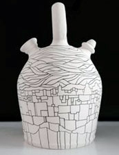 Hoy nos acompaña un botijo en el que no es difícil apreciar una decoración un tanto confusa. Como nos sentimos en estos tiempos gran parte de los mortales. Pues es fácil perdernos pensando dónde está el lugar en el que vivimos, en el que siempre deseamos hacerlo, donde hallar los campos proclives a dar buenas cosechas o los que únicamente son propensos al baldío, analizando si disfrutaremos de cielos encapotados o gozaremos animosos con los rayos del sol que da vida. El artista que decoró el botijo probablemente se sentía un tanto confuso, perdido, buscando su futuro en un mundo que no tiene clara las ideas.