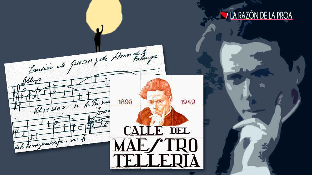 Me vuelvo a centrar en el Cara al sol para refutar qué hubiera representado la mayor condena para Juan Tellería; tengo para mí que, históricamente, forma una trilogía revolucionaria de calidad musical junto con La Internacional y La Marsellesa, con la gran diferencia de que en las estrofas que fueron improvisando los de la escuadra de poetas no se contiene la menor alusión a un enemigo ni al odio, cuyos tópicos literarios son, por este orden, la novia, la muerte, los luceros o más allá, la primavera y la victoria. Aquí la intervención diabólica falló completamente.