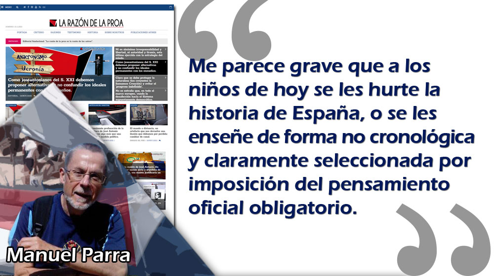 Más grave me parece que, en estos tiempos, a los niños actuales se les hurte la historia de España, o se les enseñe de forma no cronológica y claramente seleccionada por imposición del pensamiento oficial obligatorio, pues el de entonces no nos llegaba a las aulas; o que se retire de los programas el análisis de la morfología y de la sintaxis, tan necesario para la comprensión lectora y la expresión oral y escrita; que se estudien la física, la química o las ciencias naturales en clave de género…