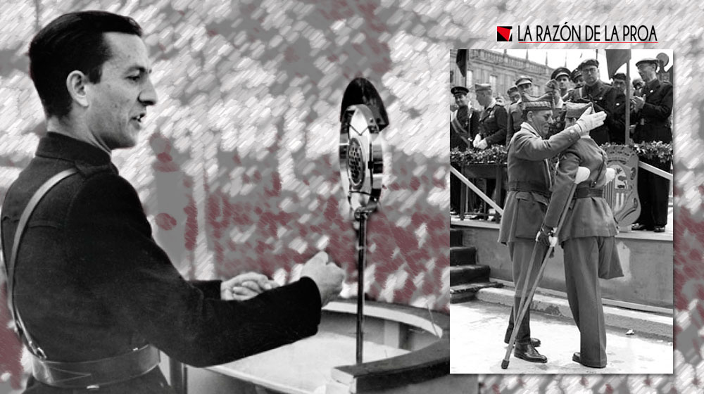 Así pues, el 18 de julio de 1938, Ridruejo organizó varios actos públicos de homenaje a los combatientes y el más importante se convocó en Valladolid, con algunos miles de hombres traídos de los frentes. Invitó al general como orador y éste agradeció la invitación. Ambos compartían el mismo hotel y en la mañana del acto Ridruejo recibió un aviso del general para que pasara por su habitación. Allá fue el poeta y encontró a Millán Astray...