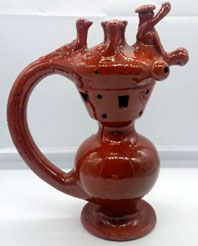 Por eso añoramos los tiempos en los que nuestros antepasados se sentaban en verano, en las clásicas sillas de enea, en la puerta de la casa, a comentar con sus vecinos el transcurrir de la vida de la ciudad y sus habitantes, acompañados por un botijo que calmaba la sed cuando era necesario. Hoy traemos un curioso y antiguo botijo, del alfarero Jiménez de Jamuz, de León, de barro vidriado, que tiene la particularidad de ser "de trampa", con lo que el bebedor confiado puede regarse en lugar de beber.