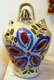 Como el botijo que hoy traemos a colación, robusto para aguantar todo el trasiego al que se le someta, con la particularidad de que el desconocido alfarero situó tanto el pitorro como la boca de llenado prácticamente en la vertical de la pieza. Es jugar con lo distinto pero manteniendo las formas, la tradición, la honestidad, aunque se cambie la hechura.