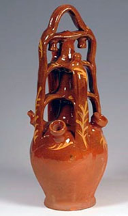 Para mejorar el ambiente, hoy nos apetece regalar a nuestros lectores un botijo que es una pieza excepcional, salida de las manos de Alfonso Almaraz, último alfarero soriano de Tajueco, quien lo ha bautizado como «cantir de Torre Tajueco», pues viene a simbolizar la torre del campanario de la localidad, cuyos carillones aparecen representadas en las dos piececitas de la parte alta del botijo.