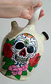 Amén. Que no se asusten nuestros políticos, que no tenemos intención de invitarlos a cualquier malsano bebedizo en este botijo que el artista decoró con una calavera, o calaca que dirían nuestros hermanos mejicanos, en un momento de humor negro.