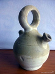 Nos encanta brujulear por todas las tierras españolas buscando sus peculiaridades, aquello en lo que son diferentes a los demás, la originalidad de sus gentes. Hoy traemos a nuestra página un típico botijo de la alfarería levantina de la Navà, Alicante, en barro blanco biar, al que el maestro alfarero ha dotado de un asa considerablemente grande para el tamaño de la pieza.