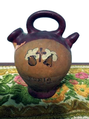 Por eso traemos con gusto un botijo en el que aparecen marcadas, sobre la palabra Hurta, una cruz, una campaña y un cántaro o botijo, y procede del valle de Nuria, Gerona, lugar entregado en la actualidad casi en exclusiva al deporte del esquí.