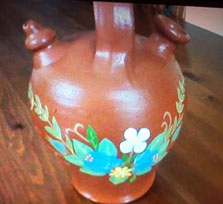 Para que esto llegue a ser realidad algún día, rezaremos concienzudamente en compañía del botijo que hoy traemos a colación, antiguo él, y procedente de Mazcuerras, Cantabria, aunque sin conocer las manos que lo fabricaron o decoraron.