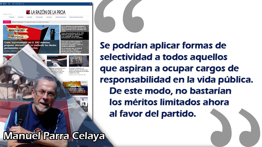 De este modo, no bastarían los méritos limitados ahora al favor del partido o de su jefe correspondiente, los intereses creados, los nepotismos; también se evitarían las habituales zancadillas, que nunca faltan entre los conmilitones de un partido político, con riesgo de divisiones o de tránsfugas.